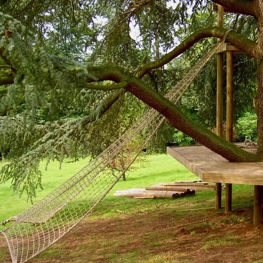 • climb-in’ Scramble Net ‘Den’, underneath the Treehouse
