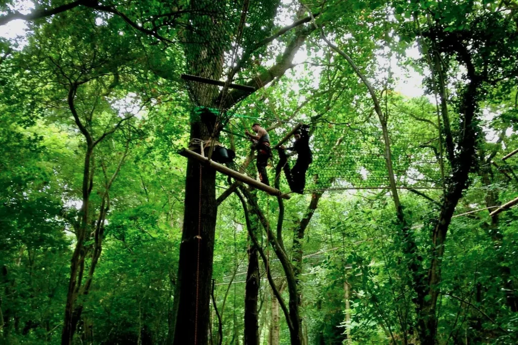 Treetop Walkway Adventure Park. Amazing aerial adventure park, built in surrounding woodlands and nature. With Treetop Walkway bridges, Rope Ladders, Zip Wires and Tree Swings this play area hosts a wealth of exciting play equipment. Superb fun for all the family keen for adventurous outdoor play. Forest aerial Treetop Walkway and Hammock Bridge. In a beautiful natural English woodland, fitted with a Zip Wire and canopy platforms this is the best way to enjoy the woods and surrounding nature. Treehouse Life experience and creativity making magical spaces.